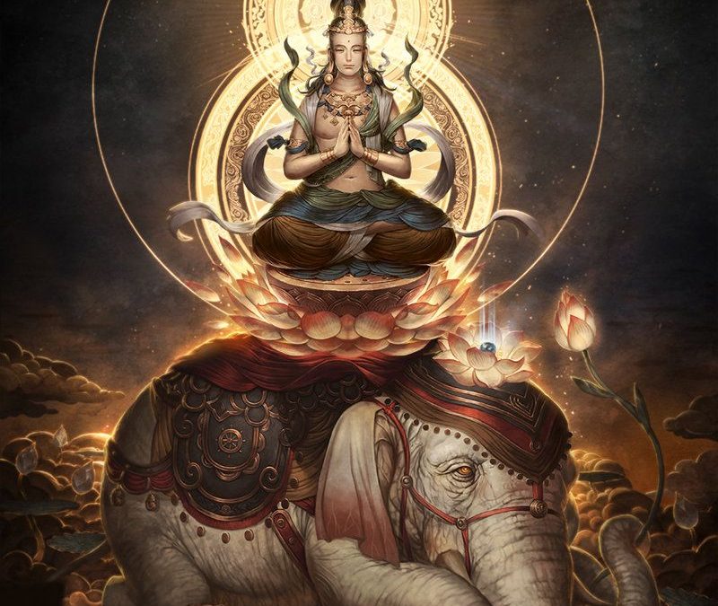 Meditation and mindfulness are the two practices that are best-known here in the West in connection with Buddhism. However, in countries where Buddhism is native, most laypeople will take part in more devotional practices - prayers, offerings and so on. Our series The Way of Devotion was started to reflect this important aspect of Buddhist practice that may otherwise be neglected. Devotion warms the heart and encourages our stiff-necked ‘I’ to bow and open up to the presence of the inherent powers of the Buddha-heart. This month we featured Samantabhadra, the Bodhisattva whose patronage is the whole of the mindfulness (daily life practice) itself.