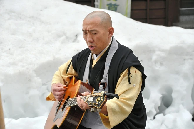 Buddhist monk’s viral chant set to guitar attracts a new following GOSEN, Niigata Prefecture--Togen Yoshihara sings pensively while he plays the guitar on the grounds of a temple here, not for a concert but as a religious rite.