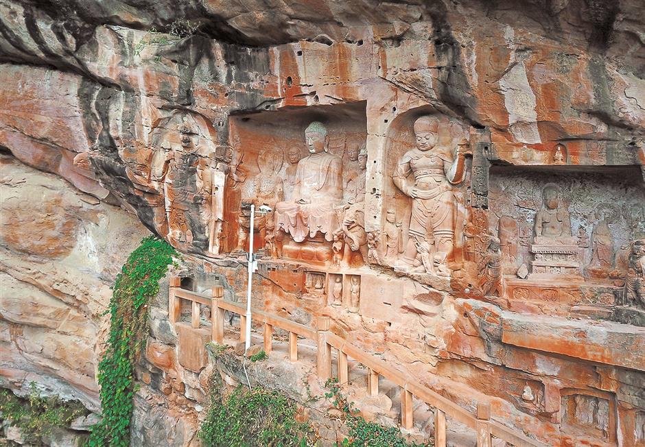 Huazhi Temple's Buddhist grottoes still breathtaking after 1,200 years. Hidden in the deep forest on the Huashi Mountain surrounded by Zhuxi Lake in the city of Qionglai, Sichuan Province, Huazhi Temple earns its reputation from its beautiful Buddhist grottoes that date back more than 1,200 years.