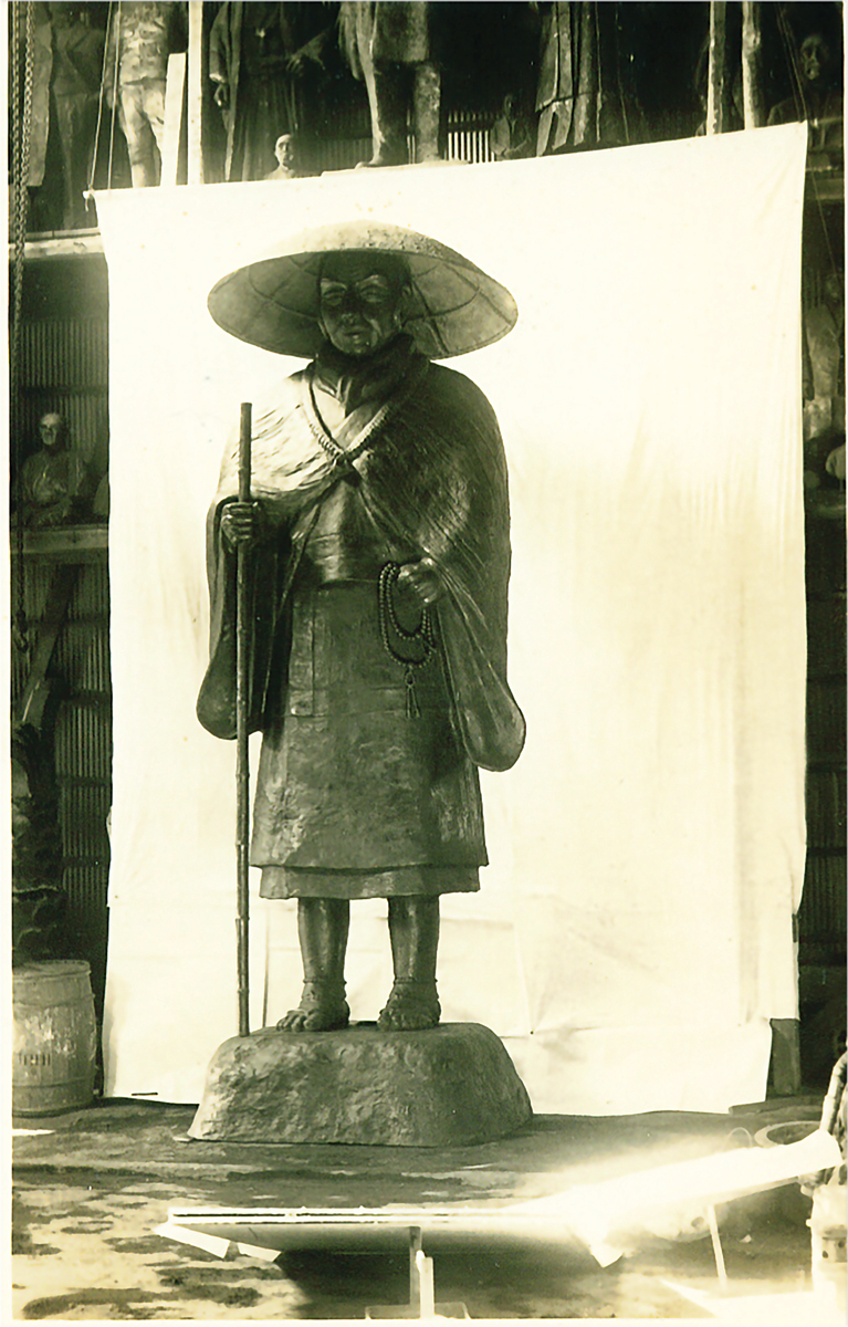 A statue of Shinran Shonin at the foundry in Japan where the bronze was cast