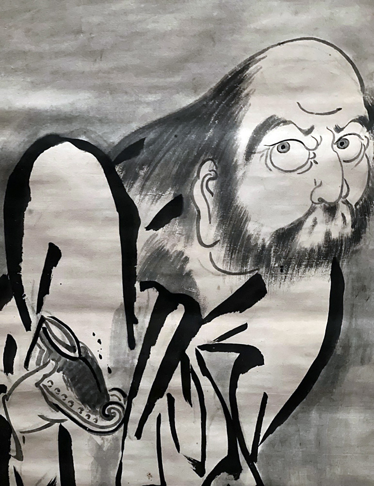 Hakuin Ekaku (1685-1768) is the most famous monk of the Edo period, best known for having revitalized the Rinzai Zen school and widening its appeal in Japan. However, he was also a towering figure in the bold-brush ink painting and calligraphy known as Zenga. This exhibit goes back and forth in time, tracing his immediate predecessors as well as the lasting impact he had on major Japanese artists over the next three centuries. The core of the exhibition is Hakuin’s own scroll paintings, which range from playful to profound; from comical to awe inspiring. The lively spontaneity of his many varied works is striking, but for those involved in Zen training they also provide a powerful example of spiritual insight.