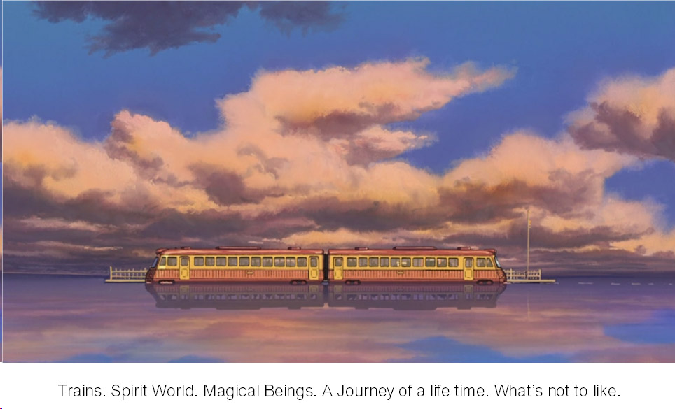 I’ll leave you all with this thought experiment. Throughout Spirited Away, Chihiro goes through a process of forgetting about the human world. In part, this is how the spirit world operates, but more significantly it reflects an understanding that by embedding yourself within an idea, a worldview, or a new perspective a whole new world can open up for you.  So, given that I am writing for a primarily adult audience, I would encourage you all to forget yourselves as you watch. Think of it as a chance to be a 12- year- old again. Many would give up their right arm for that!
