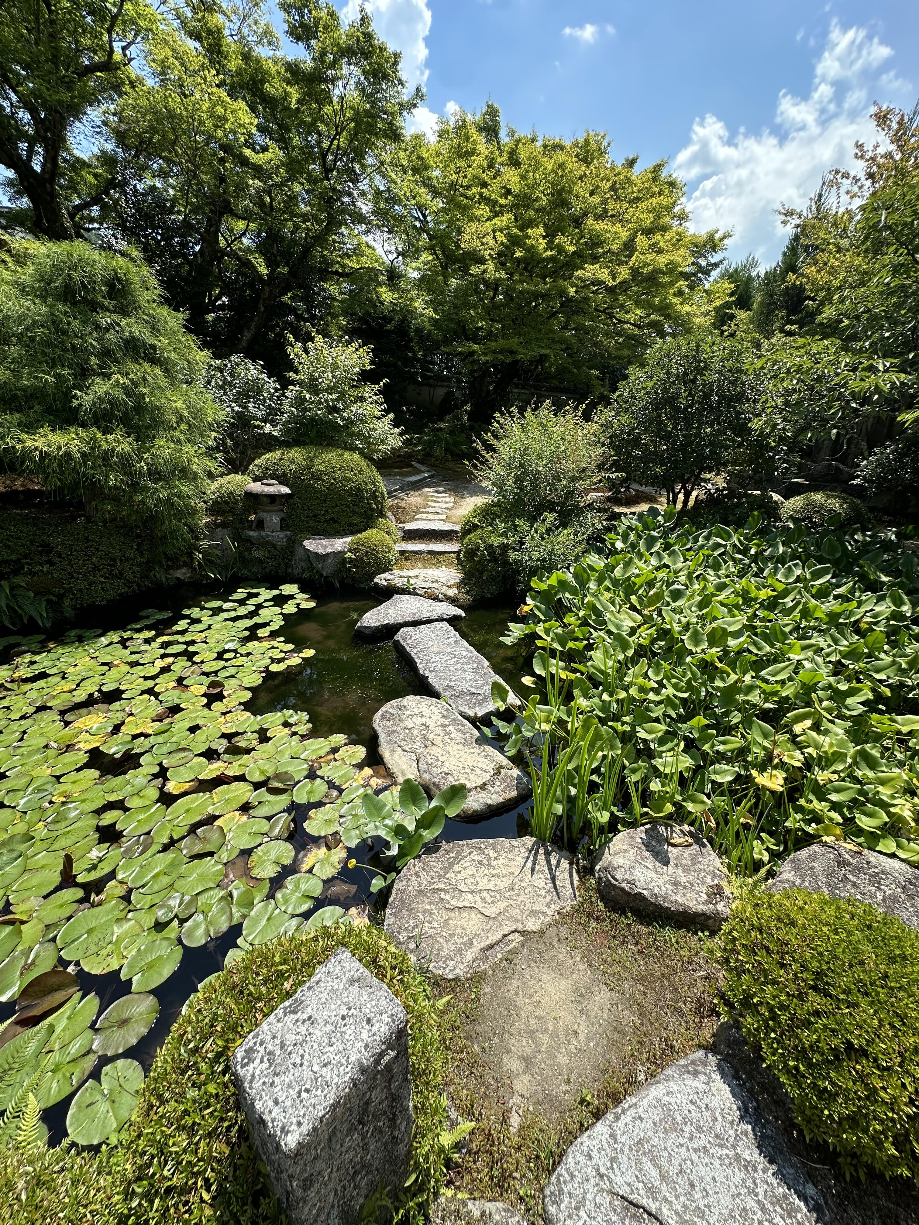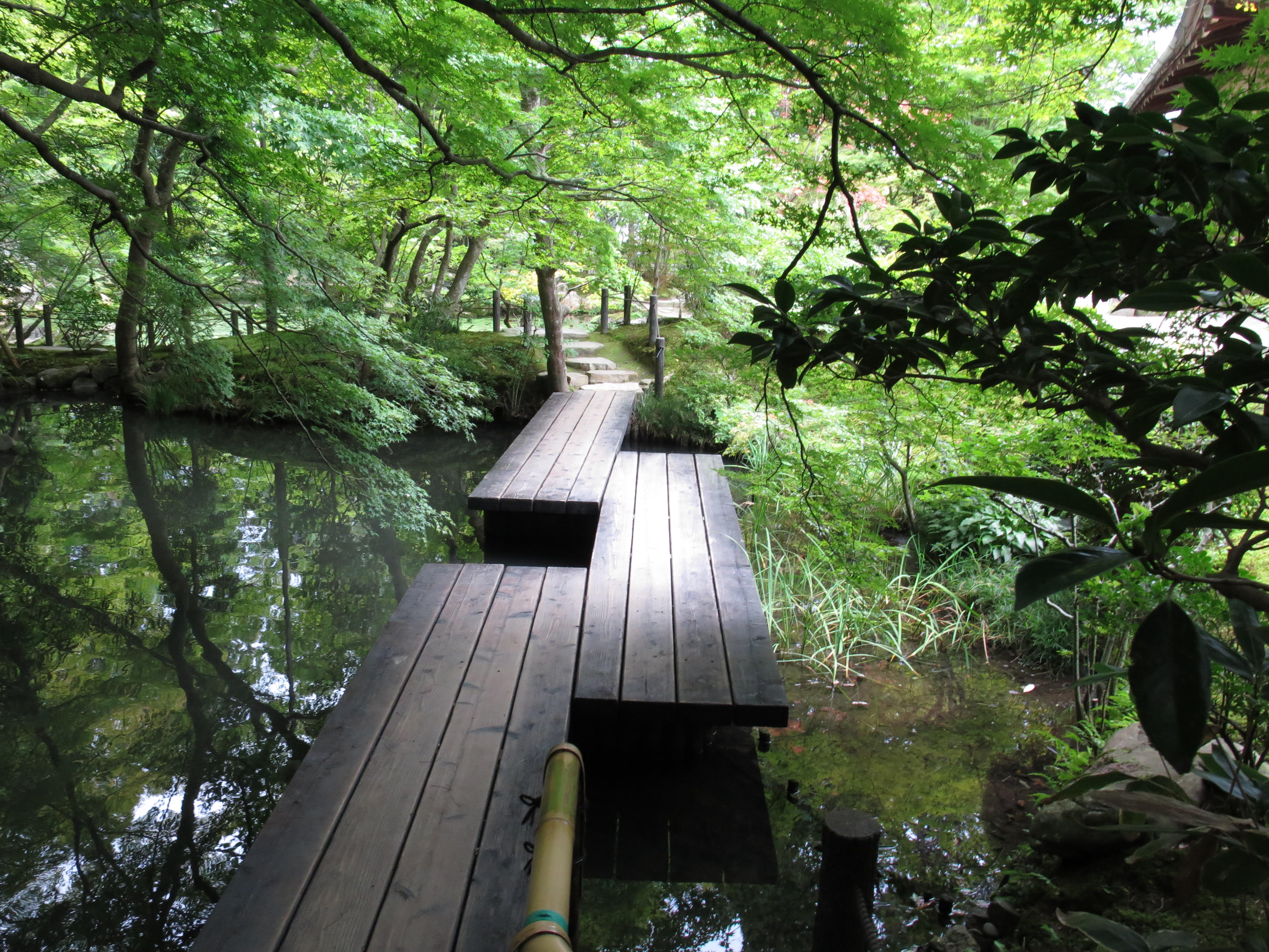 Unlike the recreational spaces of western garden design, with lawns on which we freely walk (and picnic!), the Japanese garden determines how we experience it, carefully directing the way in which we use and navigate its space. While some gardens are designed to be viewed from a distance and do not allow entry, those that can be entered rely on the garden path (roji) to set down this experience. Much like music in which the tune carries us through the piece, the path leads us on a carefully choreographed journey through the garden. Stepping stone paths may quite literally ‘point’ the way, like the arrow path at the temple of Jikkō-in in Kyoto; or the uneven, winding path of the Japanese tea garden which forces us into a state of heightened attention, or the wider meandering path of the ‘stroll’ or ‘paradise’ garden, which guides the visitor around a pond or a lake, a style which American architect Frank Lloyd Wright referred to as the ‘go-round style’ of garden.
