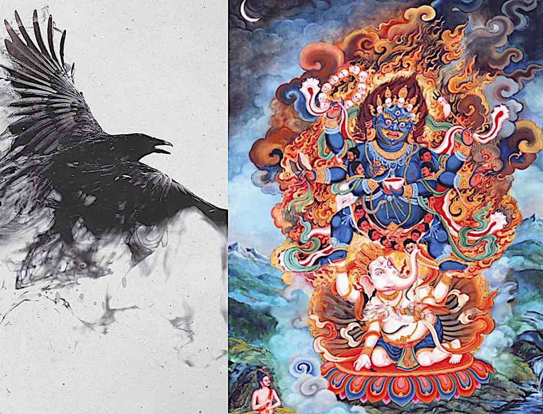 Mahakala: Miracles of Great Black and the Dalai Lama Three Men in Black, the Mahakala brothers, the Dalai Lama, and a crow.