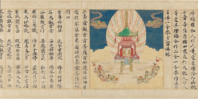 The floating jeweled stupa; illustrated Lotus Sutra, Japan 1257.