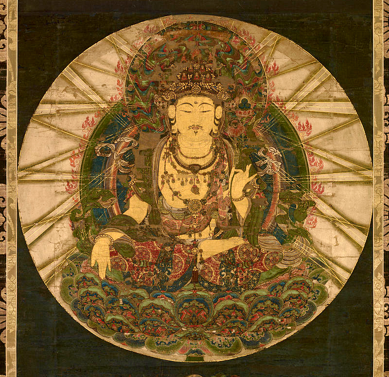 The Bodhisattva known as Kokūzō is the Japanese name for Ākāśagarbha whose name means ‘sky-store’ from ākāśa meaning ‘sky’ and ‘garba’ which can mean either store, seed or womb (You may be more familiar with this from the term tathāgatagarba, which refers to the ‘seed’ within sentient beings that will attain Buddhahood. Chinese Buddhism developed this doctrine into the teaching that all beings have the Buddha Nature which is to be realised by practitioners).
