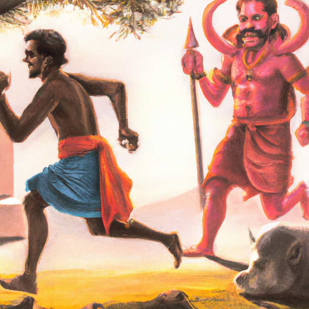 During the early hours, the merchant was abruptly woken by a tremendous banging and crashing that came from the far side of the cemetery. He was terrified and peered from behind another tombstone to see a terrifying sight.