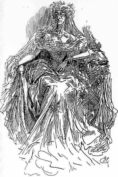 Miss Havisham, in art by Harry Furniss from the library edition of Charles Dickens's Great Expectations..